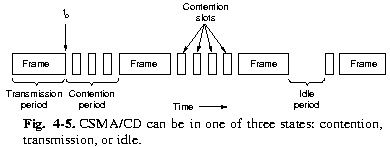 Here stations abort their transmissions as soon as they detect a collision. After a transmission is finished at point t0, any other station having something to send may now attempt to do so. If two or more stations decide to do so, a collision occurs.