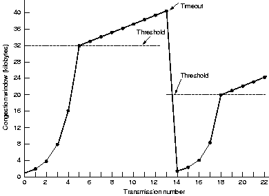 When a timeout occurs, the threshold is set to half the current congestion window and the slow start is repeated. If an ICMP source quench packet comes in, it is treated the same way as a timeout.